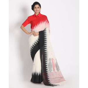 Off White Linen Saree with Striking Triangle shape Jamdani Woven Design